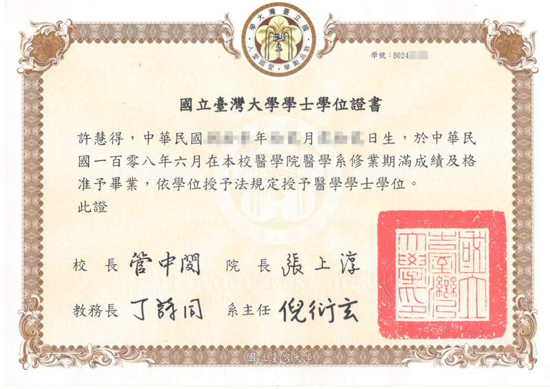 高雄醫學大學醫學系學士 臺北醫學大學醫學資訊研究所碩士 臺北醫學大學醫學科學研究所博士 馬偕紀念醫院皮膚科住院醫師、主治醫師 亞東紀念醫院皮膚科主任兼醫學美容中心主任 臺北醫學大學市立萬芳醫院皮膚雷射美容中心主任 日本東京國立癌症中心中央病院客員研究員 日本東京虎之門病院皮膚外科客員研究員 日本東京大塚美容外科、Ritz美容外科 橫濱橫美美容外科進修